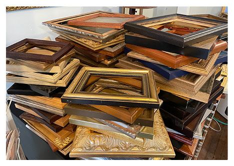 Frames of all sizes old and new. With our large variety of prefabricated frames and frame stock we are sure to having something for your wall art.